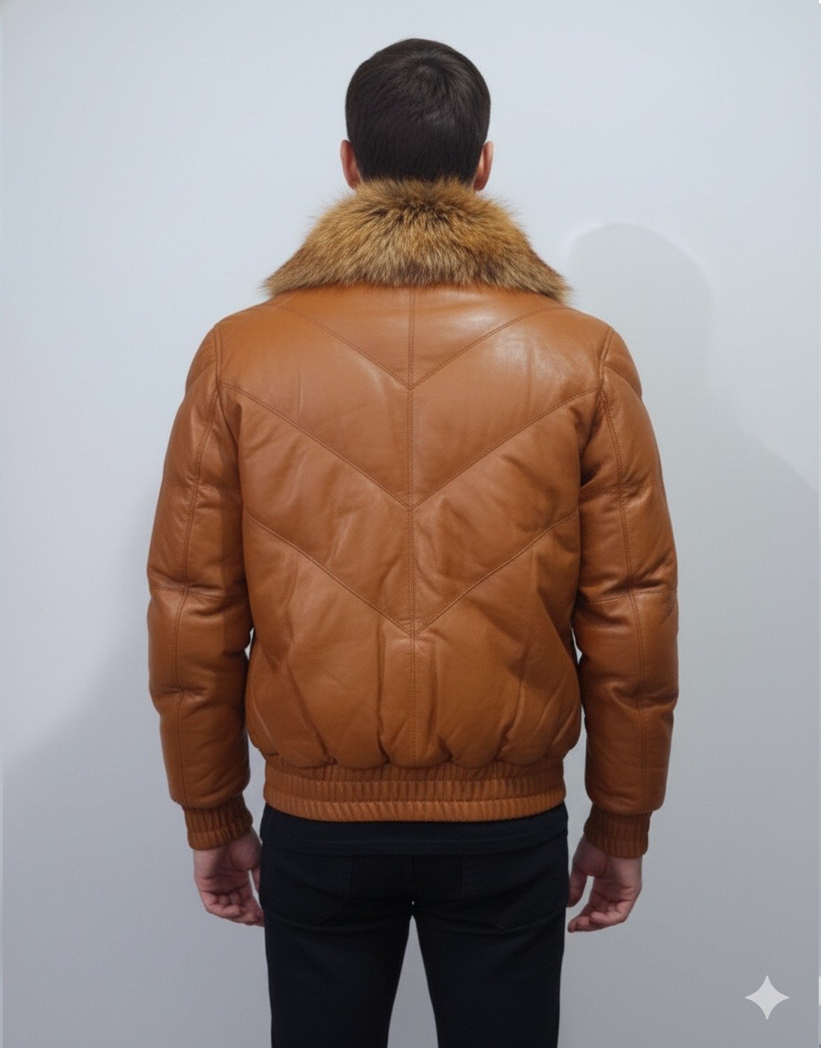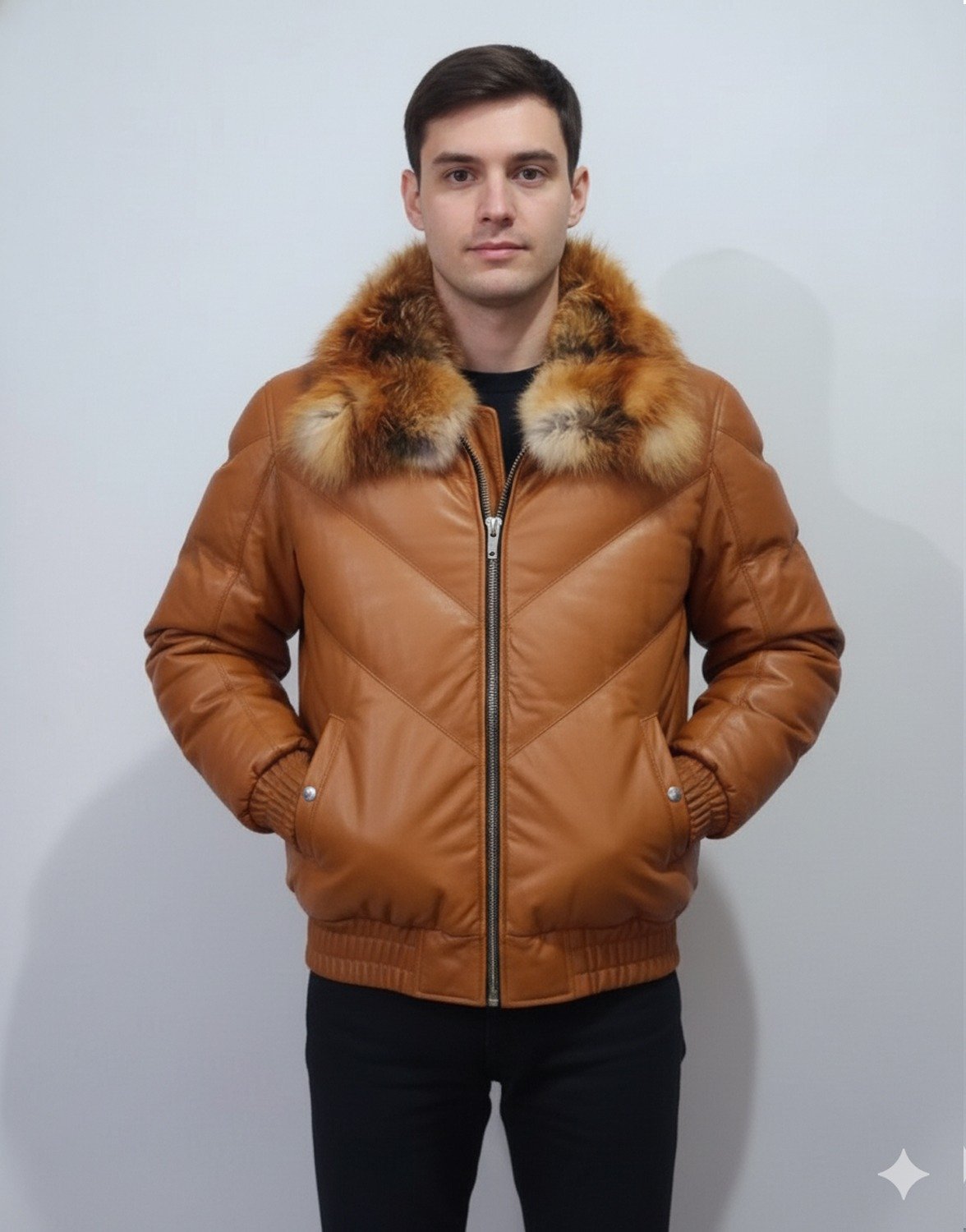 Our Leather V-Bomber Jacket for Men is the epitome of style fused with functionality. Crafted meticulously from premium-grade leather, this jacket offers durability and a sleek appearance, making it a quintessential addition to your wardrobe. Designed to be versatile, whether you’re dressing up for a casual outing or aiming for a sophisticated edge, the V-Bomber jacket ensures you stand out effortlessly.