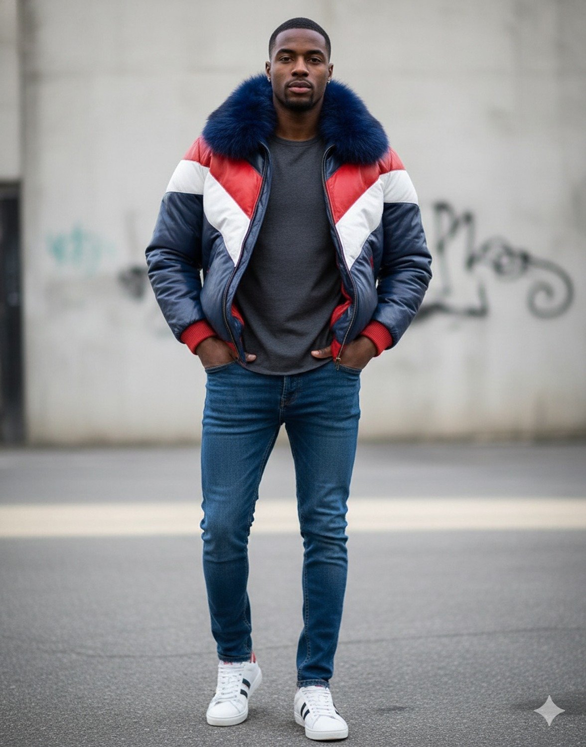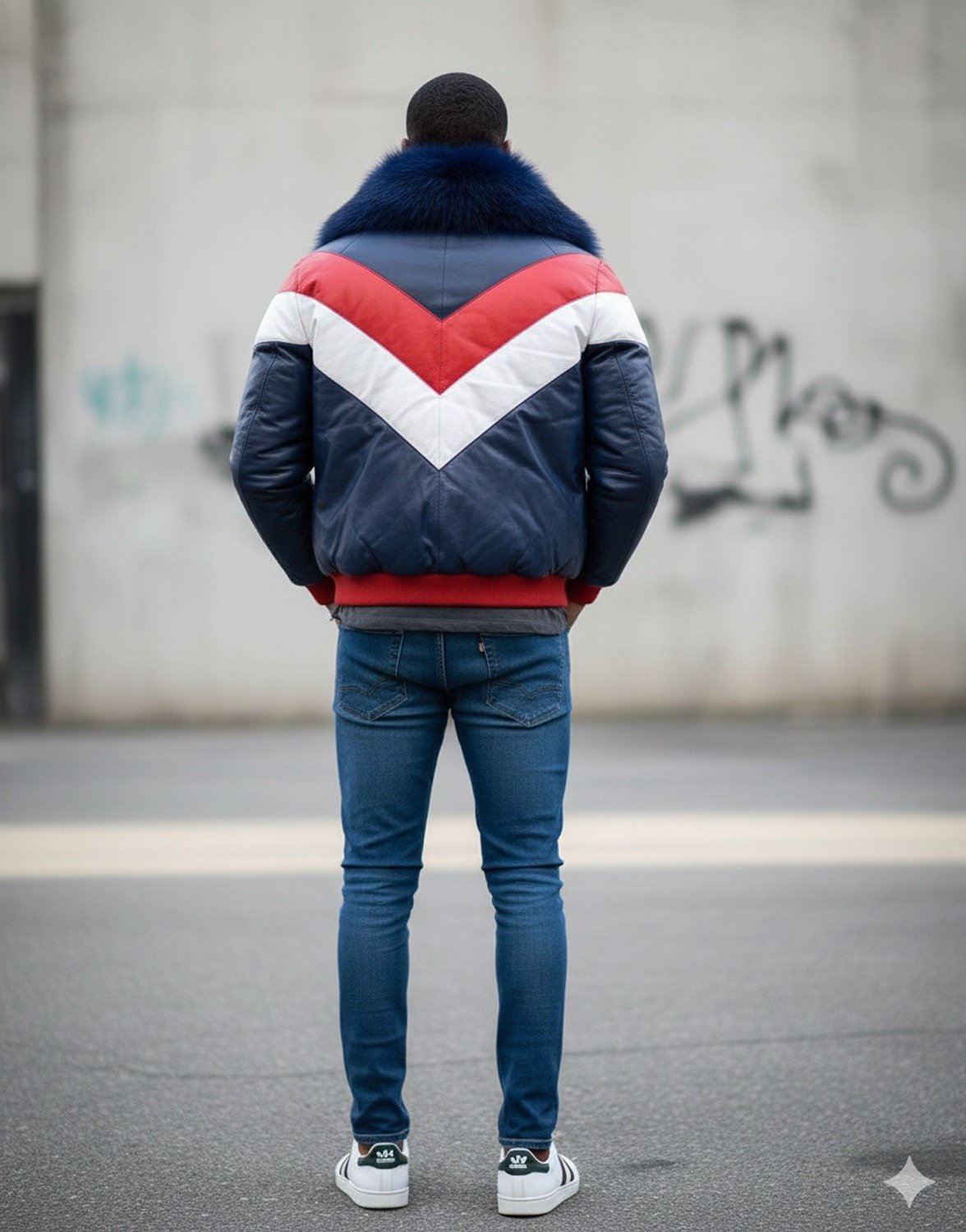 Our Leather V-Bomber Jacket for Men is the epitome of style fused with functionality. Crafted meticulously from premium-grade leather, this jacket offers durability and a sleek appearance, making it a quintessential addition to your wardrobe. Designed to be versatile, whether you’re dressing up for a casual outing or aiming for a sophisticated edge, the V-Bomber jacket ensures you stand out effortlessly.